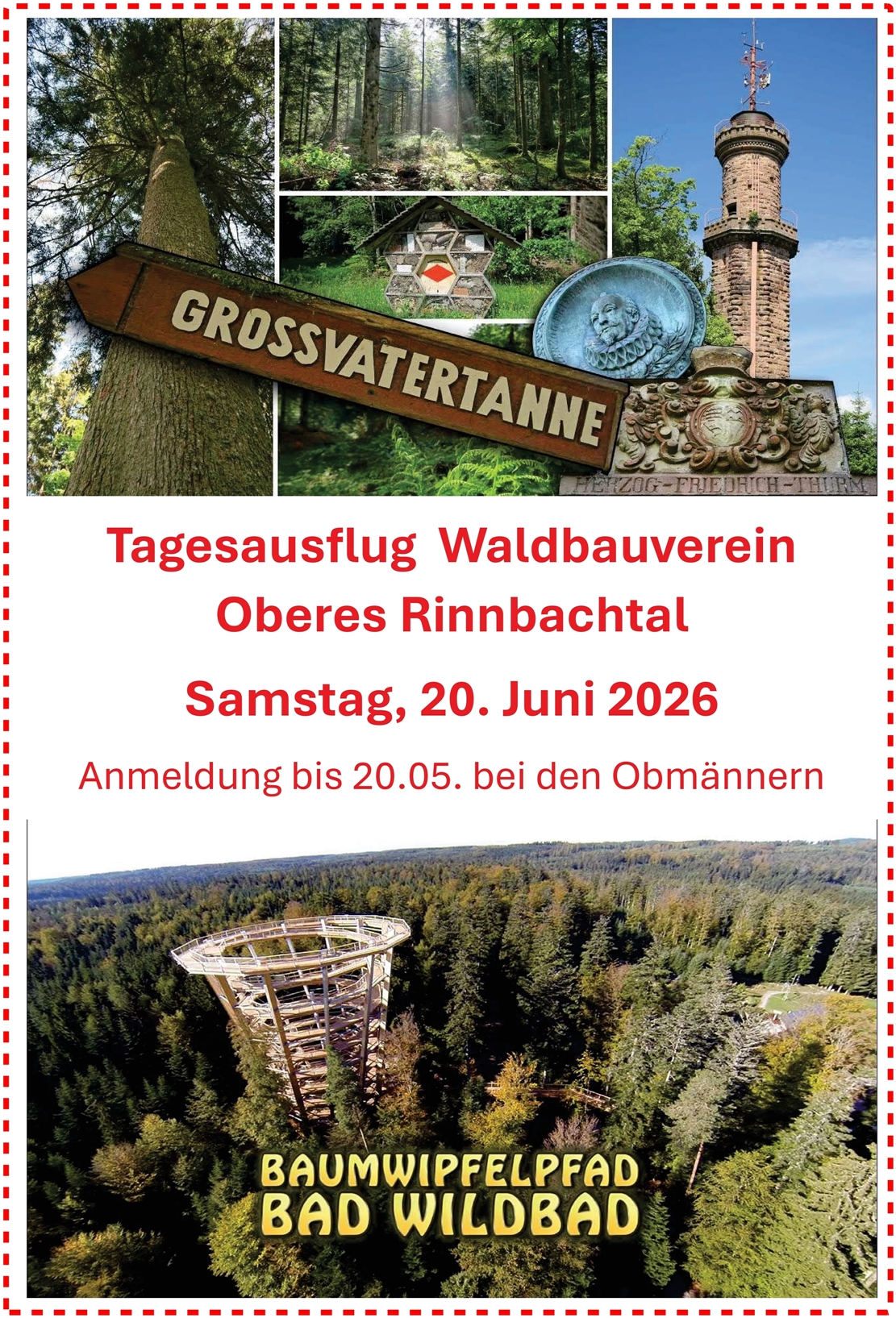 3. Am Sa. den 20.06.2026 wird eine Busfahrt in den Schwarzwald nach Freudenstadt stattfinden. Nach einer Exkursion mit dem Forstamt